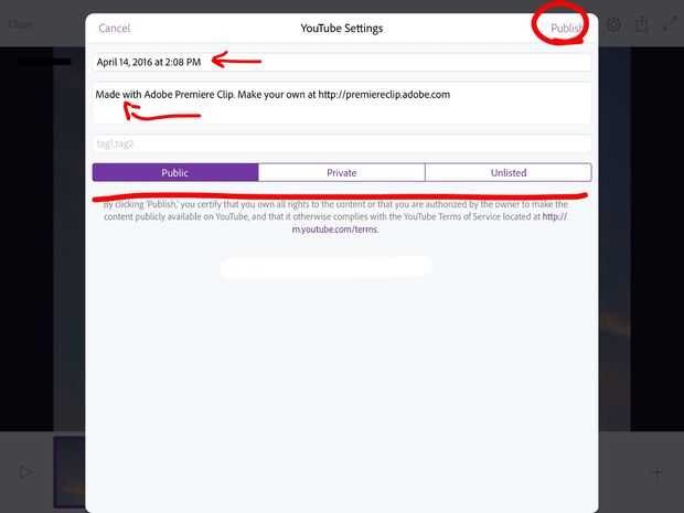 Asegúrese de añadir un título y se desea una descripción. Entonces usted puede hacer públicas, privadas o no cotizadas.