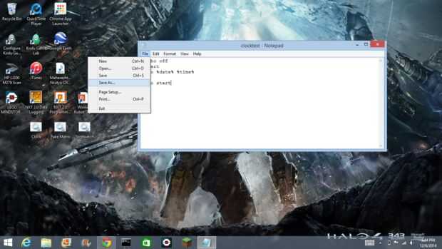 Guardar como Clock.bat (en serio no importa lo que usted nombre como tiene .bat en el extremo como se muestra en la imagen.