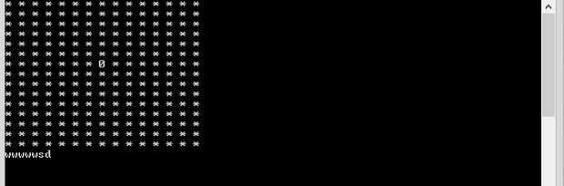 Usa las teclas wasd para moverse un 0 en un mar de * s.
