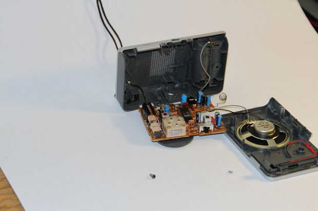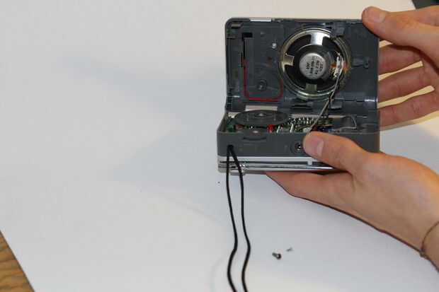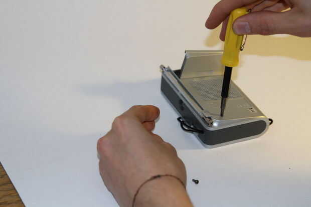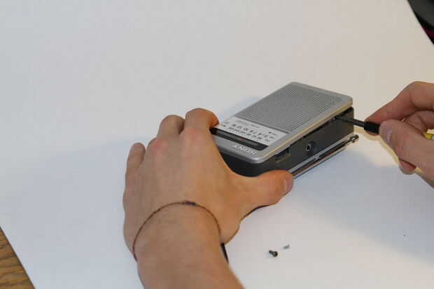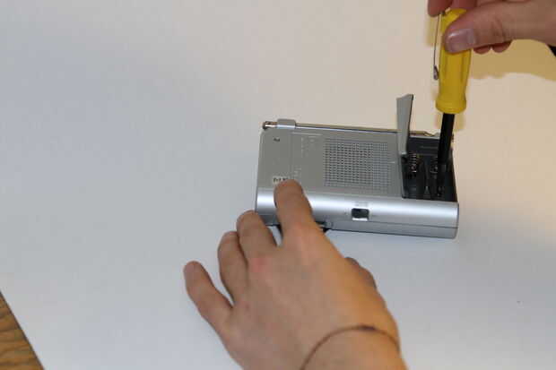 una vez que estos salen, voltear la radio para que el borde plano más largo quede frente a usted. cuña con cuidado un destornillador en la parte superior se unen y pries abren la radio... Ver el vídeo corto para obtener información paso a paso.