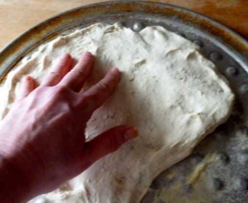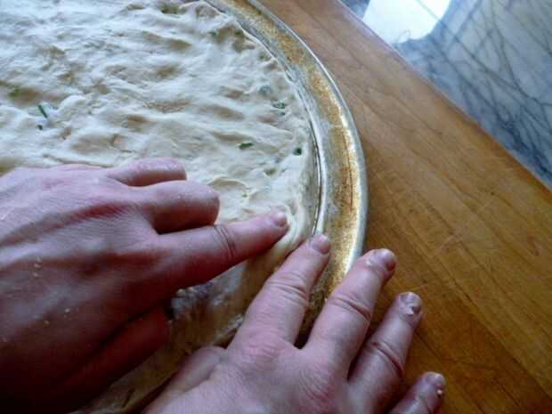 4. moje los dedos con agua y presione la masa en la bandeja de montaje ligeramente en los bordes. Con los dedos índice, presione los bordes para formar un borde y luego pinchar la masa con un tenedor de 15 a 20 veces.