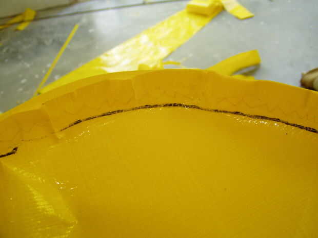 Trabajar su camino alrededor del panel base, pegadas a la costura. Que tenga que mover y ajustar a deshacerse de cualquier pequeña arruga. Al acoplar un panel con bordes curvos como el mío, puede ayudar a hacer poca cutts en desde el borde, mantenerse dentro del margen de costura. Esto permite parte de la tela sobrante se superponen perfectamente.