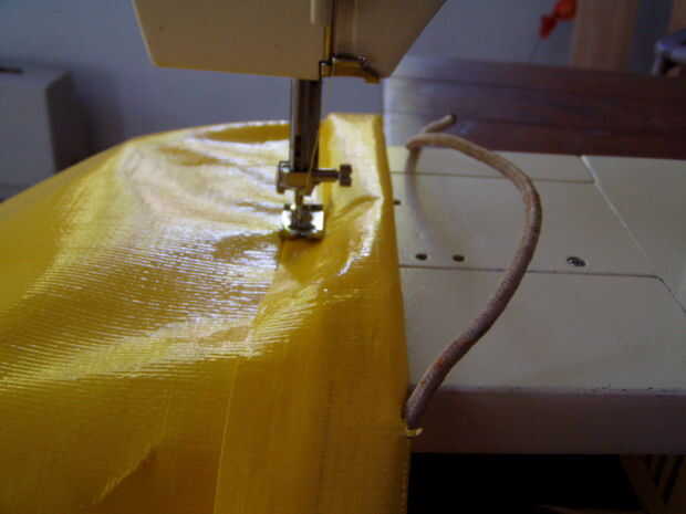 Ahora necesitas algo para sostener la parte superior cerrada. Utilicé un cordón rígido, pero puedes usar cinta, velcro o cualquier otra cosa que tienes.