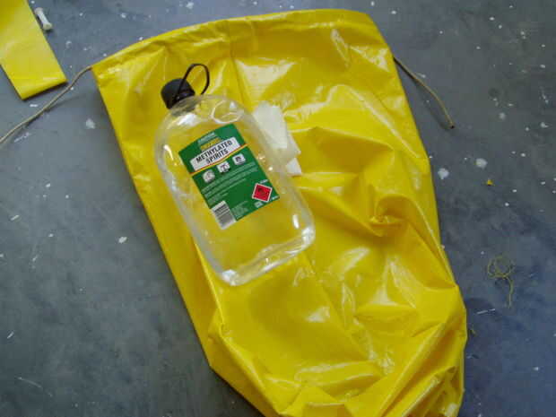 Limpie el área alrededor de las costuras con alcohol desnaturalizado o enjuague con agua caliente y detergente. Esta quita y la contaminación que podría prevenir el sellador se adhiera. Aplicar una capa delgada de sellador en la costura y dejar curar durante el tiempo requerido.