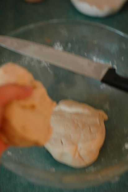 Dividir la masa (un cuchillo - es más fácil que lo rasgado).