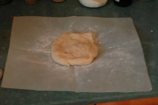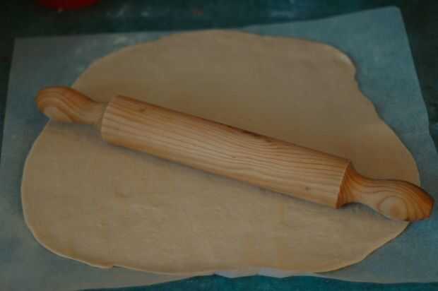 En una hoja de papel para hornear extender la masa hasta que es tan fina como usted tiene gusto. Personalmente prefiero el 3-4 milímetros más o menos, pero funciona muy bien cuando ligeramente más grueso también.