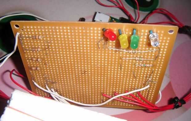 Cuando fue a mamá y Pop y demostró a mamá un protoboard en mi teléfono, ella me ha ofrecido una placa perforada. No sabía que había una diferencia, por lo que supuse que stripboards eran solderless también. Es cómo he inventó una técnica de "costura" de componentes a través de la Junta de manera que lo hace [sorta] toque la tira conductora detrás de la Junta. Esto condujo a los conmutadores que tenían Estados de alta/tal vez etc.. Soldadura todo era fácil - y simplemente fija todos los problemas.