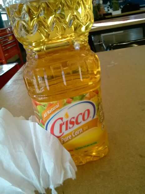 Después de eso, tomar una toalla de papel y aplique una cantidad abundante de aceite vegetal o maíz para facilitar el proceso de eliminación y quitar que se pega. Créalo o no, pegamento caliente tiende a pegarse a las superficies y no dejar ir sin luchar para lubricar el interior hace que todo lo que sigue mucho más fácil.