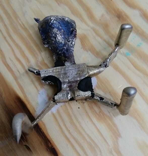 Una vez que todo se haya enfriado, quitar las dos mitades separadas y eliminar el producto. El producto en esta etapa será bastante feo con caños intermitente y ventilación empujando hacia fuera de cada dirección. La siguiente etapa es la extracción de todo eso y limpiar el formulario. Usted notará que algunos de la arcilla en las mitades del dos molde se ha vuelto negra. Quite el barro ennegrecido antes de reutilizar la arcilla porque se diluye la arcilla general y hacer menos cohesivo.