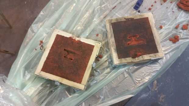 Levante con cuidado las dos mitades separadas y retire cuidadosamente el modelo. Con un cuchillo afilado, tallar un canal para el metal viajar de la abertura del marco a la cavidad. Hacer esto para que ambas mitades coinciden y crean un embudo sin obstrucciones en la cavidad.