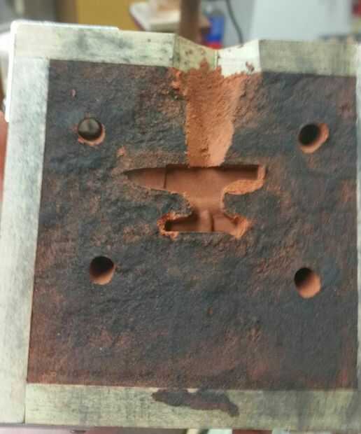 Para evitar bolsas de aire se formen en el producto final tendrá que tallar orificios de ventilación. Tomar un taco afilado o una pajita y meter varios agujeros en una de las mitades del molde. Ángulo de los agujeros para que el último hacia arriba. Esto evitará el metal todo verter hacia fuera de los orificios de ventilación. con los lugares de los agujeros, tallar a canales diminutos de la cavidad de modelo a las rejillas de ventilación para que el aire puede escapar.