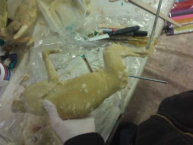Como se puede ver la espuma no ir todo el camino hasta la pantorrilla, pero esto no es un problema ya se reconstruirá con arcilla. Aquí puedes ver también parcialmente por este lado no es tan bueno como el otro. Compare la imagen a la anterior y se puede ver que la parte de arriba tiene una ranura brazo "más profunda", donde este lado no tiene ninguno, donde está sentado el hombro y la forma del estómago.
