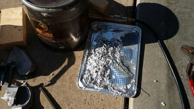 Desde mi fundición todavía estaba bien caliente de la quemadura de molde hizo un trabajo rápido de mi parte favorita de este proyecto... Derritiendo el metal! He utilizado un bellhousing de un Ford Mustang, roto en pedazos con un martillo "camino más rápido y más divertido que con una sierra" luego derretido. Una vez su fundido me aseguro de mantener el quemador para un poco más hasta que el material hasta la temperatura de colada. Asegúrese de que derrita más que suficiente metal, tendrá más que crees y es realmente una mierda para venir esto lejos sólo para tener todo el proyecto arruinado por el cuál es conocido como un parcial vierta. IM no muy científica cuando se trata de esto, he oído de un viejo contador de tiempo que debe verter el aluminio una vez su suficientemente caliente como para no ponerte una barra de acero cuando sumergido en. Así que una vez que caliente, me aseguro de desnatar la superficie para eliminar la escoria o escoria. Utilizo algunos acero rescate de alambre alagodón hasta hacerlo y funciona gran dejando nada más que hermoso brillante aluminio fundido en la parte superior. Vierta el metal tan pronto como sea posible después de desnatar la escoria, cuando viertes Asegúrese de que tiene una postura sólida y mano firme que desee verter rápido y deliberado, lo más importante no deje de verter aunque usted no atina al blanco ligeramente a reajustar y mantener el metal hasta que ves salir las rejillas de ventilación. A continuación, vierta el resto en su lata de cupcake o lo que sea contenedor tienes que hacer lingotes de.