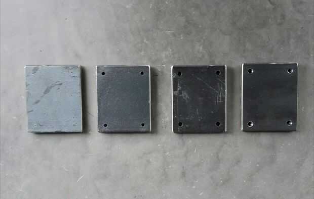 Foto #2: Las 4 placas para el montaje de las ruedas en. Cada plato representa un paso.