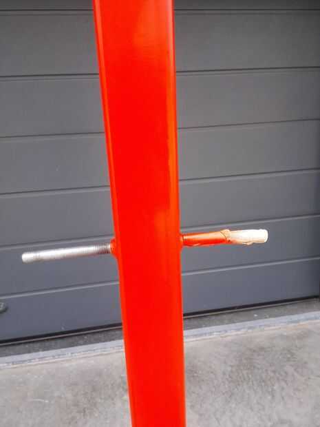 Foto #1: Vista detallada después de las dos inferiores los pernos después de la pintura. En el perno de la izquierda, ya se quita la cinta.