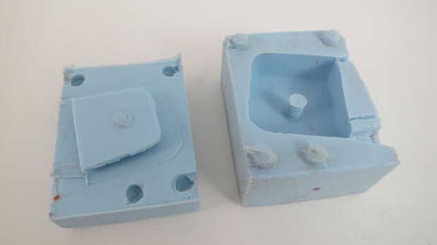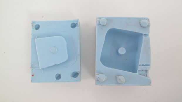 En este punto usted necesita repetir los pasos anteriores 4,5 y 6, mezcla, desgasificación y verter la silicona, para hacer a la segunda mitad del molde. Dejar que la silicona cure durante la noche y su parte principal del demold.