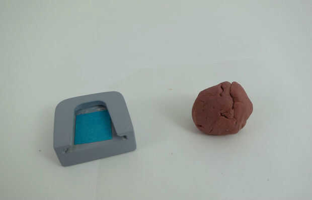 Tomar la parte principal y arcilla las zonas que no quiero dar a este lado de la silicona del molde y utilizan la arcilla para sostener la parte que el insertable de leña. Es importante que la arcilla tiene la pieza en su lugar con a destruir el acabado de la parte. También de gran importancia es el tipo de arcilla que se utiliza. Usted necesitará utilizar una arcilla libre de azufre para que la silicona no tiene problemas de curado contra la arcilla. Idealmente, usted quiere mantener la parte principal encapsulado (no tome la parte de la silicona del molde antes de que lance el segundo lado) cuando el molde de dos partes para obtener la más alta calidad de reproducción. Yo no hice esto en este Instuctable, pero es lo que quieres conseguir si es posible. Lamentablemente me vi obligado a quitar al amo de la inicial fundida para limpiar antes de la segunda mitad del molde de fundición. Estoy usando un NSP suave modelado en arcilla (plasteline libre de azufre) de Chavant. se puede utilizar como bien con plastilina. La plastilina tiene la ventaja de ser suave y fácilmente extraíble, sin embargo es no tan pegajosa como la arcilla que estoy usando. Si la parte no se mantiene en su lugar firmemente y con seguridad flotará lejos cuando la silicona se vierte en la caja de moldeo. También puede utilizar una muy delgada clara Scrapbooking cinta de doble cara de Scotch 3M