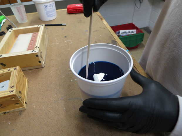 Es el momento para mezclar la silicona. Usted necesitará algunos silicona por supuesto. Para este molde utilicé silicona GI 1100 con una dureza shore A de innovadores polímeros Inc. GI-1100 es una alta fuerza de rasgón, caucho de silicona RTV-2 lata catalizada. Venden unos tipos de silicona dependiendo de la aplicación. Puede llamarlos y hablar con uno de los técnicos y puede guiar si decirles un poco acerca de su proyecto. GI-1100 es un muy bonito todo de silicona y me parece muy razonable precio también.
