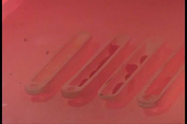 (Hicimos 900C durante 12 horas, pero nuestro vidrio no resulta muy bonitas. La cifra de seis días es de esta fuente: http://www.glasskulls.com/asending-sequence/)