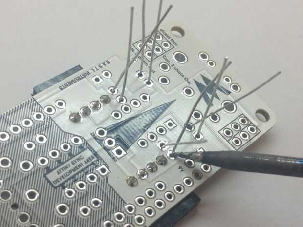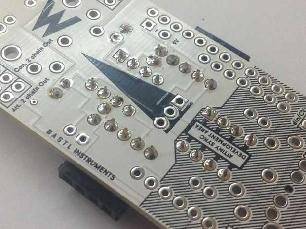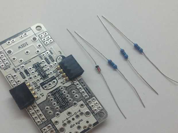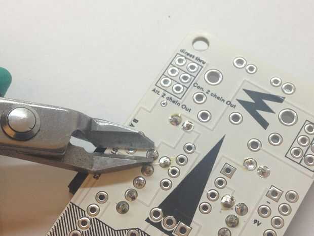 Ahora doblar las patas del diodo 1N4148 y el lugar donde la imagen muestra el diodo - la raya (negra en el diodo) es la banda (blanco en la impresión) - seguir esa polaridad! De resistencias de ohm 3 220. Soldadura, corte, fácil!