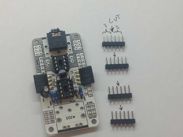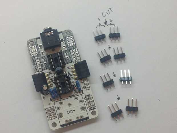 Preparar 8 cabeceras de 3 pines. Son fáciles de soldar cuando usas los conectores puente para hacer las 6 clavijas sujetan. Que retire los puentes - vamos a establecerlos correctamente más adelante.