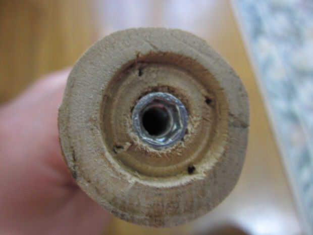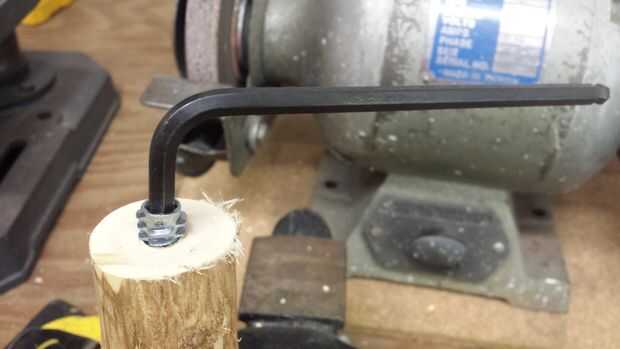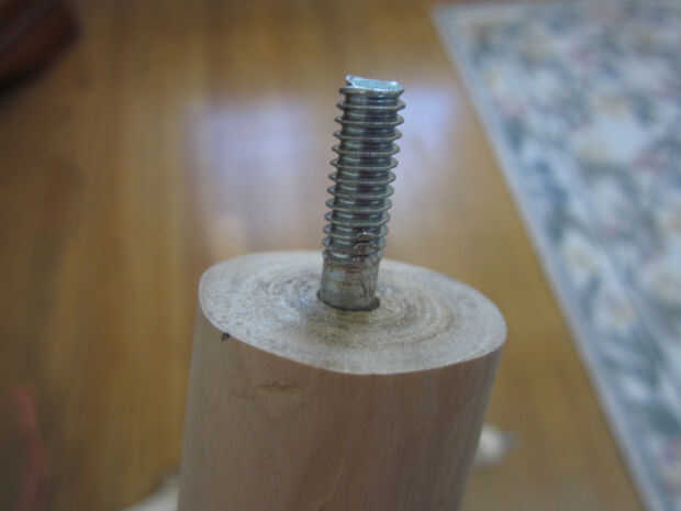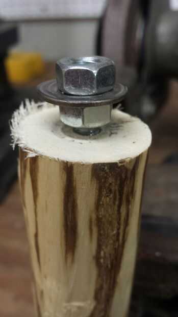 Sugerencia: he encontrado que si pones una tuerca, arandela de entonces, y otra tuerca en el gancho del perno lo facilita enrosque en la madera. Retirar después de tener el perno en su lugar. Sólo con unos alicates se estropear la rosca.