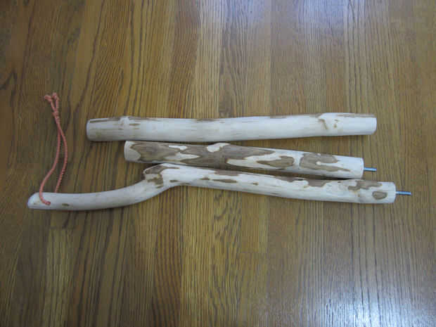 Después de perforar los orificios en los palitos, luego añadirás un perno de suspensión al palo superior, luego un inserto en la parte superior del palo central por lo que pueden acoplarse. Luego hacer lo mismo con la parte inferior del palo medio agregando un perno de suspensión y luego un insert en la parte superior de la palanca de la parte inferior.