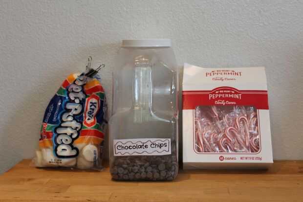 Nota: tamaño medio de marshmallow es más preferible, y nada más, pero si eliges malvaviscos grandes, asegúrese de utilizar chips de chocolate más y alarga el tiempo de microondas.