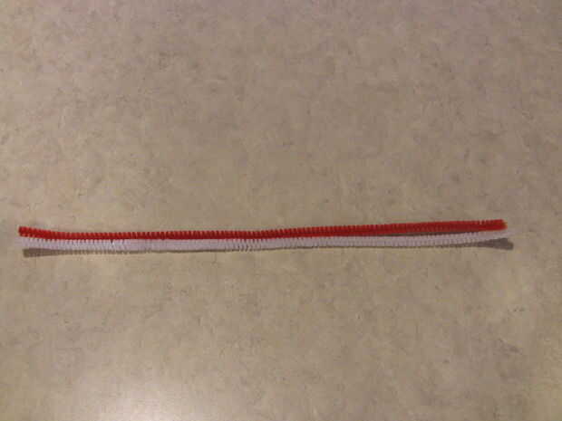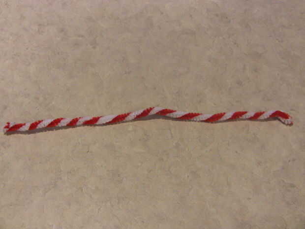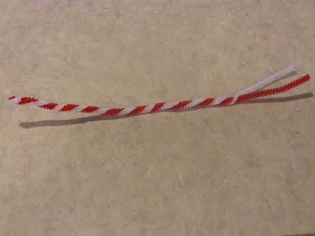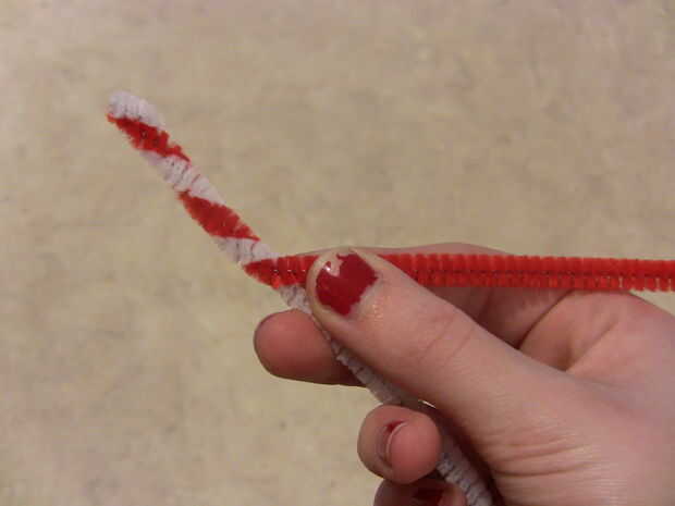 Para esta manualidad rápida necesita 2 limpiadores de pipa, One limpiador de pipa roja y un limpiador de pipa blanca.
