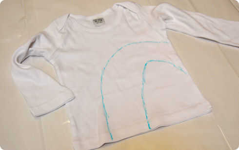 Pone la prenda hacia fuera plana sobre una mesa y agarrar su Auto Fade la pluma. Decida cuánto quiere su bastón de caramelo y trace un contorno. Se va a ver un poco como dos medio corazones. Usted puede dibujar sus líneas si es necesario, los antiguos se desvanecerán automáticamente.