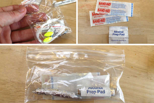 He clasificado mis accesorios de supervivencia en grupos y les había empacado. Por ejemplo, sedal, anzuelos, pesas y bobbers, fueron todos agrupados y embalado en una pequeña bolsa de plástico resellable - vendas, toallitas desinfectantes, y ungüento fueron agrupados y en otra bolsa resellable.
