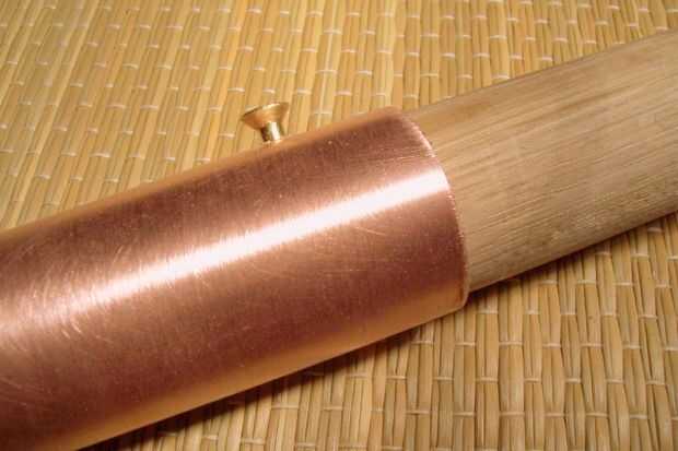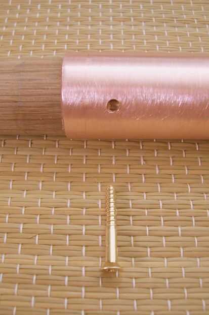 4. Introduzca el tornillo en la madera hasta los asientos de caña en el agujero de cobre como un corcho.