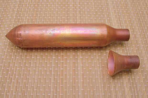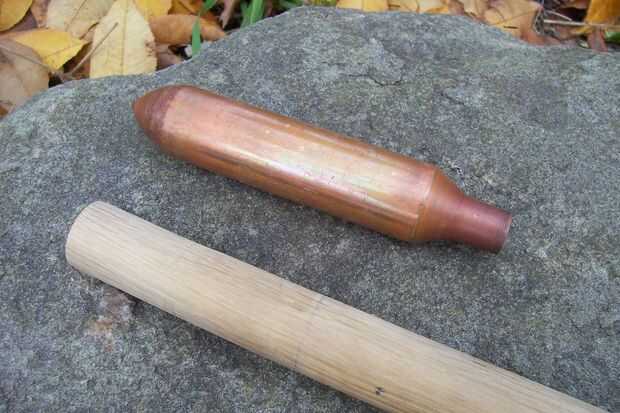 el extremo estrecho de la salida con un hack de sierra como se muestra a continuación.2. alisar el borde cortado de la porción más grande de barril con un archivo. Esta pieza es la punto.