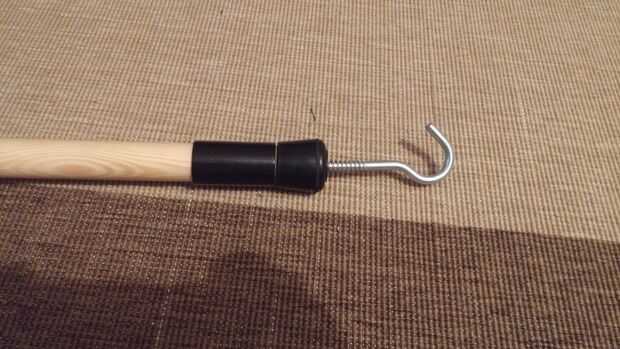 Luego compró un gancho y atornilladas en a través del tapón de goma en la parte inferior del palo. Ahora, mucho he ampliado mi alcance, en caso de ver alguna fruta o algo que quiero recoger de un árbol. O puedo recoger algo y moverlo que no quiero realmente tocar.