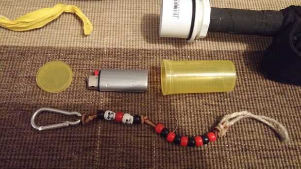 En el frasco de película amarilla, tengo un mini Bic encendedor envuelto en cinta adhesiva y también un contador de distancia de grano de Ranger personalizado que hice. divertido jugar con esto y calcular hasta qué punto varias cosas. Asegúrese de que usted sabe cómo convertir kilómetros en millas y saber la distancia entre los pasos de su marcha natural, de lo contrario, usted podría terminar perdido!
