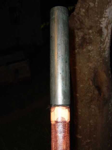 montar todas las piezas. Tomar el recipiente y medida 3/4" de donde cortar y perforar 3 igualmente espaciadas alrededor del envase para colocar pequeños clavos o tornillos, asegúrese de que los agujeros son sólo lo suficientemente grandes como para poner los tornillos o clavos a través. Quite la tapa de su contenedor. Dosificar una pequeña cantidad de epoxi y mezclar bien, luego extendió alrededor de la zona de arena que el contenedor se coloca sobre. Usted puede tomar el papel de lija de 50 grano y áspero hasta el interior del contenedor y la sección sobre el bastón para darle un apretón más firme. Otro truco es tomar un 1/4" pedacito de taladro y taladrar unos agujeros de 1/4" de profundidad para hacer unos bolsillos para el epoxy, esto es opcional por supuesto. Después de aplicar el epoxi, deslice el contenedor sobre el bastón con un ligero movimiento de torsión y mantener firmemente en su lugar durante unos minutos. Tomar su palo mezcla del epoxi y utilizarlo para difundir el epoxi alrededor de la articulación y para quitar cualquier exceso de epoxy. Dar el epoxi otro pocos minutos antes de meter tus clavos o tornillos. Que los clavos o tornillos que utilizas no son más largos que 1/2" o penetran en el orificio de la lanza de pescado y usted no será capaz de poner la lanza en el agujero. Establecer un lugar donde no conseguir golpeado alrededor o caída para permitir que el epoxi terminar el ajuste. Esto debe tomar unas horas para configurar.
