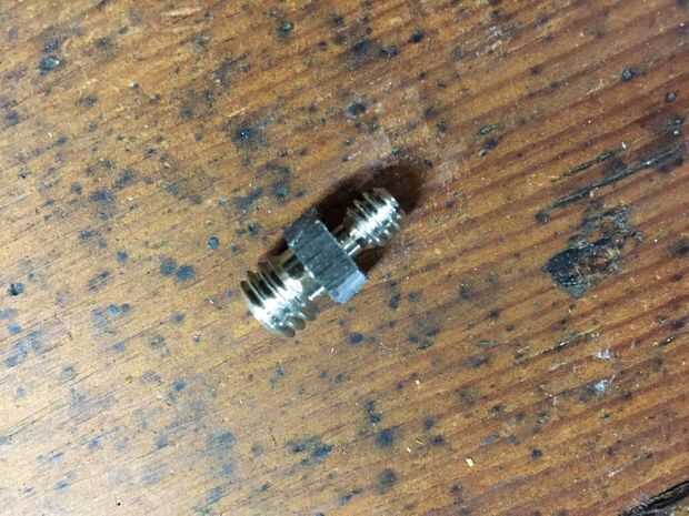 Según el perno que hayas elegido puede que necesite usar una broca para ensanchar el agujero en la punta del palo de senderismo. En mi caso ya que yo estaba usando un perno adaptador 1/4" a 3/8" que era necesario hacerlo. Cuando termines, tienes un tornillo que se enrosque firmemente en la punta de su bastón de senderismo.