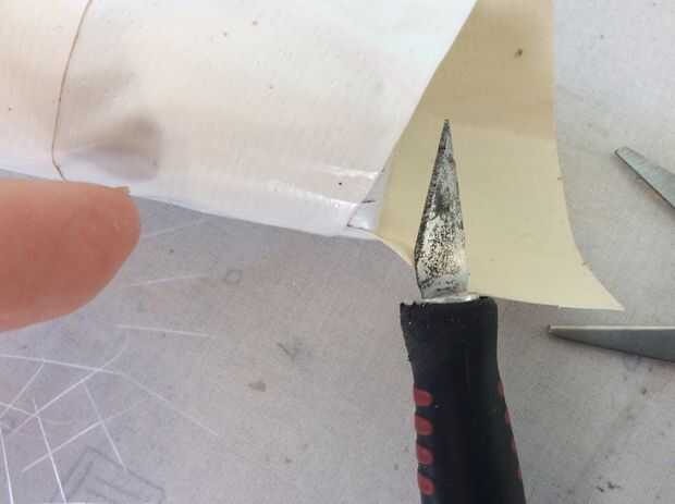 Utilice un cuchillo para recortar la superposición de su bastón.