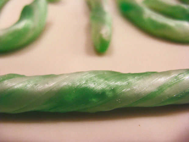 Seguir adelante hasta que esté fuera de azúcar stripey! Usted tenga que recalentar un poco. También puede ajustar apagado pedazos pequeños, cortar las piezas con tijeras, divertirse con él! Cuando termines tendrás un montón de bastones de caramelo y definitivamente uno debe comer mientras está caliente, es una experiencia única. Me gusta el sabor de estas mucho mejor que el bastón de caramelo típico caramelo comprado, y si no estás de acuerdo, puede cambiar el sabor en su hornada siguiente!