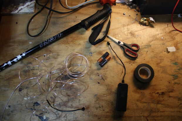 Ya tuve un par de bastones de esquí, y compró EL alambre de una tienda en ebay - tuve 5 metros de la materia, además de un controlador, para alrededor $6 total, enviado. Si tienes tienda, podía hacer aún mejor. Tenía dos pilas AA, pero es muy trival. El multímetro no es en absoluto necesario para este proyecto, pero me ha gustado comprobar la Junta baratito en el controlador.