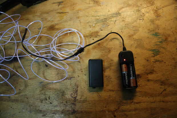 Conecte el cable EL, deberá brillar. Si no funciona, verifique su materia (polaridad, buenas baterías, etc.).