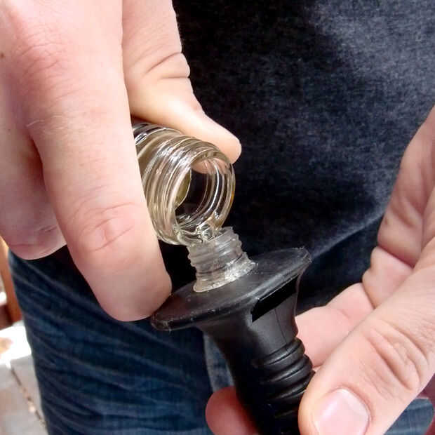 Cuidadosamente Vierta el licor en cada polo y séllela firmemente con las tapas.