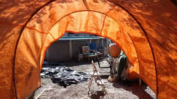 Bueno esto era sólo una versión de prueba y me doy cuenta que a pesar de que esta estructura estaba parado hasta una tormenta bastante fuerte tengo que cortar el tubo y usar algunos conectores de T en la cresta de centro y tal vez en ambos lados, también algunos lazo delantero de cuerdas y posterior probablemente ayudaría. Ahora es el momento para tomar abajo y limpiar de este lío he hecho. Tengo sobre un tiempo de construcción de media hr involucrado incluyendo no volver y adelante a través de la yarda para conseguir más material o parar a tomar fotos