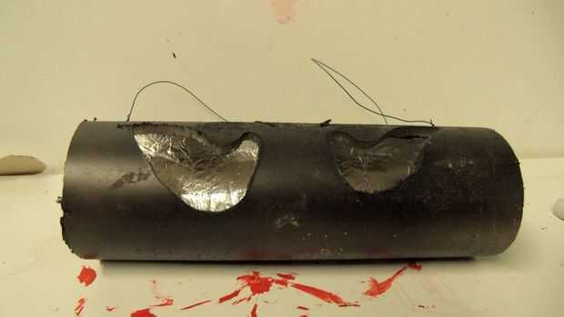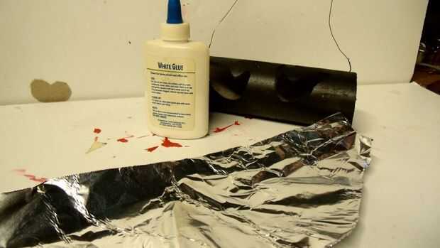 Mi pvc era tipo de sucio y conseguí algunos negro en aerosol dentro de la pipa así que cogí algunas aluminio aluminio y blanco pegamento, arrancó un 2 x 5" pedazo de papel y pegado dentro de la tubería