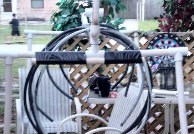Hace años, mi esposo trajo a casa un montón de carretes metálicos utilizadospara almacenar el alambre del MIG. Cosió el paño de alambre en el carrete en algomanera rudimentaria y la llamó un comedero. Un mapache demolidoque, el carrete fue cortado en