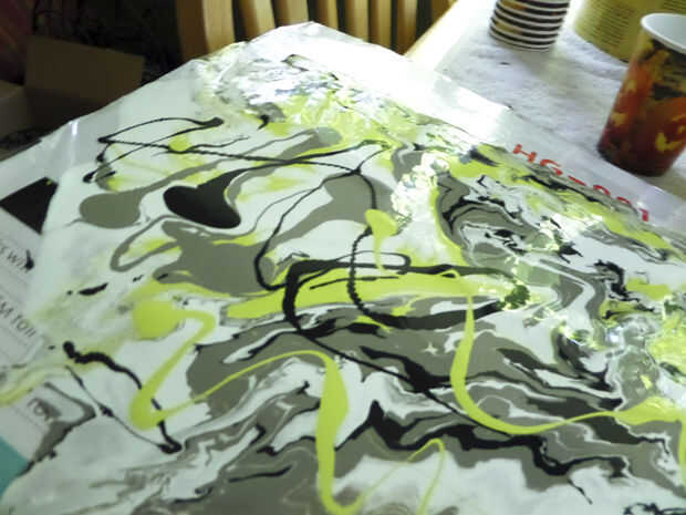 Mantenga inclinando y girando y añadiendo pintura hasta que algo te gusta. Recuerde, deje que la pintura haga el trabajo. Eres justo a lo largo de para el paseo, ver el espectáculo hasta que usted decida es sobre.