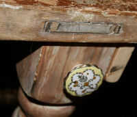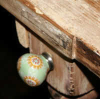 Pero por supuesto quería añadir una cosa más. Me encanta recoger puerta Linda botones perforados un asimiento en la cara de la pierna y lleno de madera pegan y colocar las perillas de puerta antigua a lo largo de cada pata.