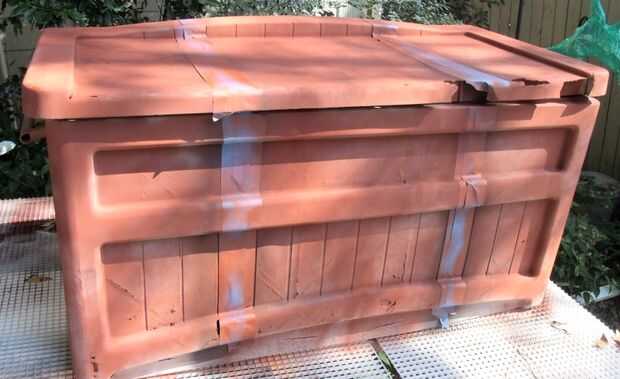 tuve algunos marron primer y pintura en aerosol negra mate por lo que empecé pintando en "correas" luego grabado apagado y utilizado la imprimación marrón para cubrir el pecho, unas rayas de negro espalda espolvoreado encima con brown junto con el hecho deliberadamente manchada aplicación de brown le dio una mirada de madera que no puede mirar para que funcione bien grande en la luz del día pero en la oscuridad (me tardé más tiempo en este tipo párrafo que pintar el pecho)