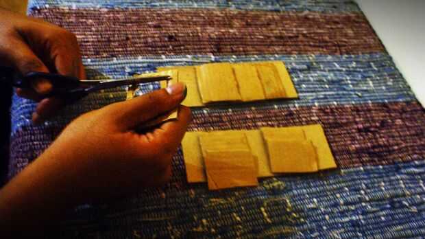 De las partes restantes de la caja, cortar su titular de la tarjeta, en efectivo y foto.