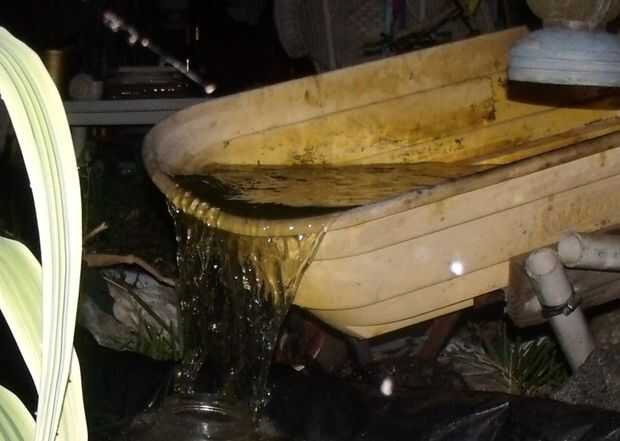hay mucho aquí que se ha encontrado y reutilizar desde el revestimiento del estanque de sí mismo que tenía una fisura, pero con un revestimiento de plástico negro es perfectamente usable, la bomba es en realidad una pequeña piscina filtro y bomba combo menos el cartucho del filtro, las plantas rescató de mi hijas vecinos banqueta y pegado en el estanque también mantienen hasta que encontré un lugar para ellos pero parece que gusta donde están! El carro es una adición reciente que puede o no puede quedarse, como estaba limpiándolo que me di cuenta hace una caída de agua agradable y pensó... hhhmmm permite probar esto...